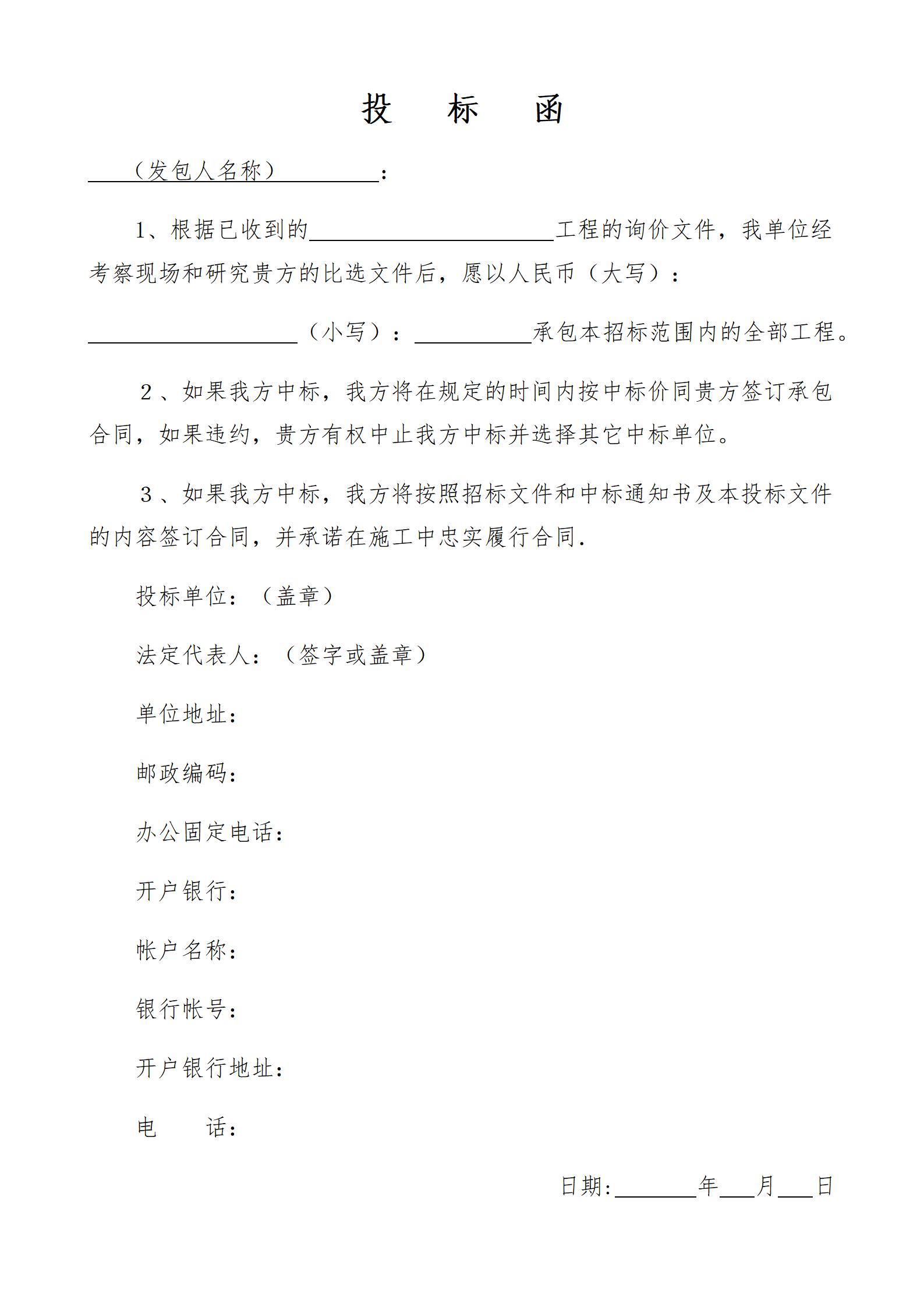响应文件包括报价函、营业执照复印件加盖公章、承诺书、授权委托书